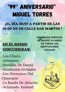 Este jueves 27 de Julio se conmemora un año más de la fundación de la localidad de Miguel Torres.