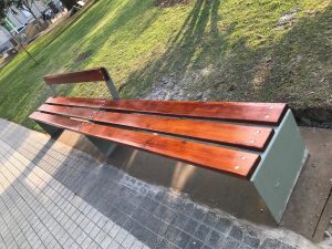 Cabe agregar que además de los cestos comenzaron a verse nuevos y modernos bancos en las distintas aceras de la plaza.