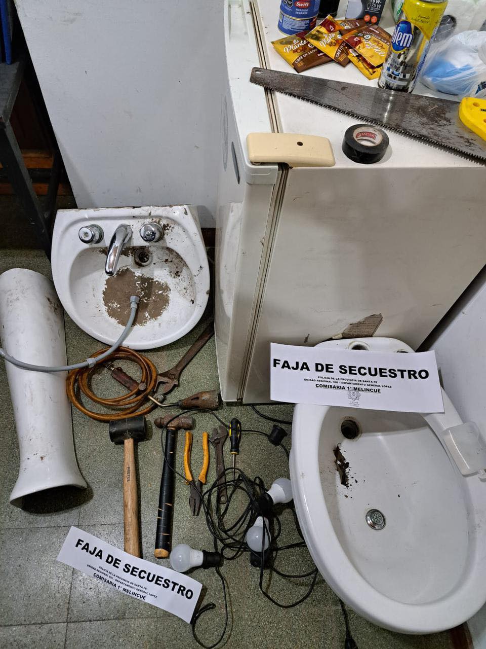Una vez interiorizados del delito, se hicieron presentes en el domicilio de forma inmediata y realizaron un rastrillaje a pié en un terreno baldío lindero, donde lograron hallar una heladera, un inodoro y una pileta de baño, varios focos y herramientas de mano ocultos bajo la maleza, los mismos elementos que habían sido denunciados.