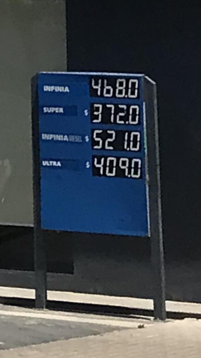En la ciudad de Firmat, la nafta Super quedó en $372, la Infinia a $468, el Diesel Ultra en $409 y el producto más caro, Infinia Diésel a $521.