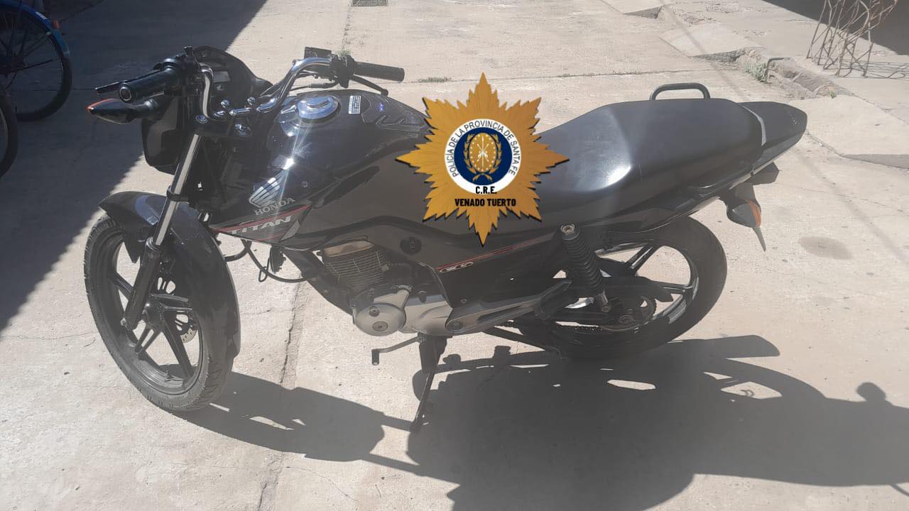 En horas de la mañana del jueves, personal de Comando Radioeléctrico de Venado Tuerto fue comisionado a Belgrano al 1900 ya que habían sustraído una motocicleta marca Honda Titan de un domicilio.