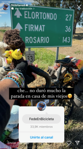 «Mirá cómo estamos con una picadita», dijo Fede en un video en donde se lo puede ver en la zona del Playón del Ferrocarril rodeado de firmatenses que siguen su aventura y sabían de su escala por la ciudad.