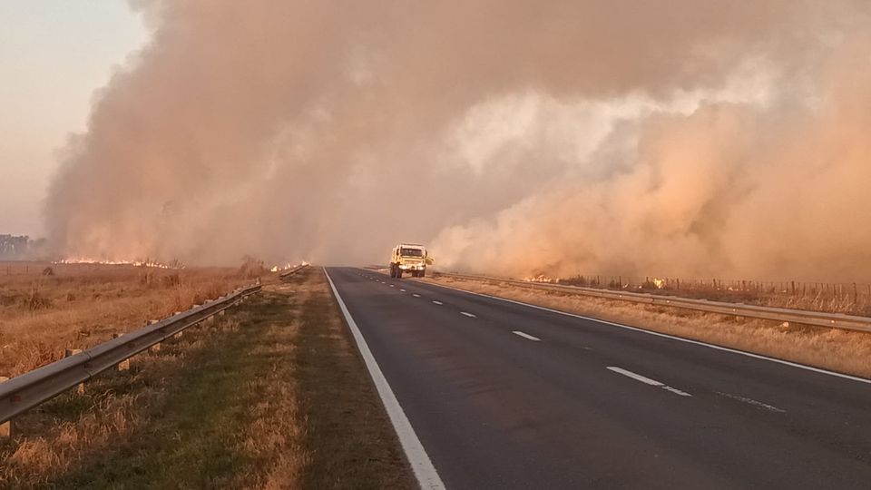 Producto de la nula visibilidad generada por el humo, Policía de Seguridad Víal cortó el tránsito de la Ruta Nacional Nº 33, en el km 619, a unos pocos kilómetros de Venado Tuerto.