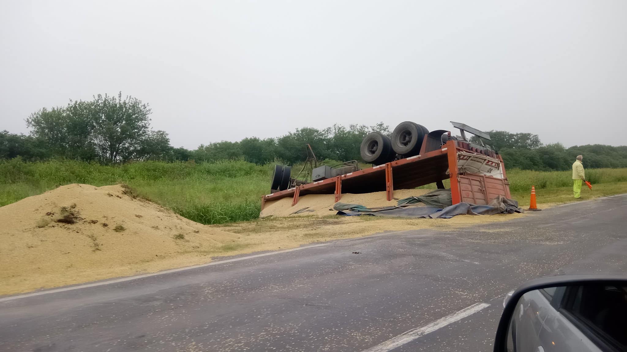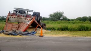Durante la madrugada de este martes, alrededor de las 5:30 horas, por razones que desconocen, se produjo el vuelco del acoplado de un camión que transportaba soja con rumbo a puerto.