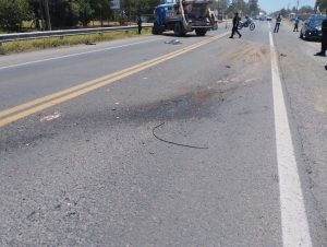 También en la mañana del miércoles, un camión Mercedes Benz 1114, de color azul, conducido por un hombre de nombre Paulo y de 56 años, impactó contra una moto. Como resultado, el motociclista perdió la vida en el acto.