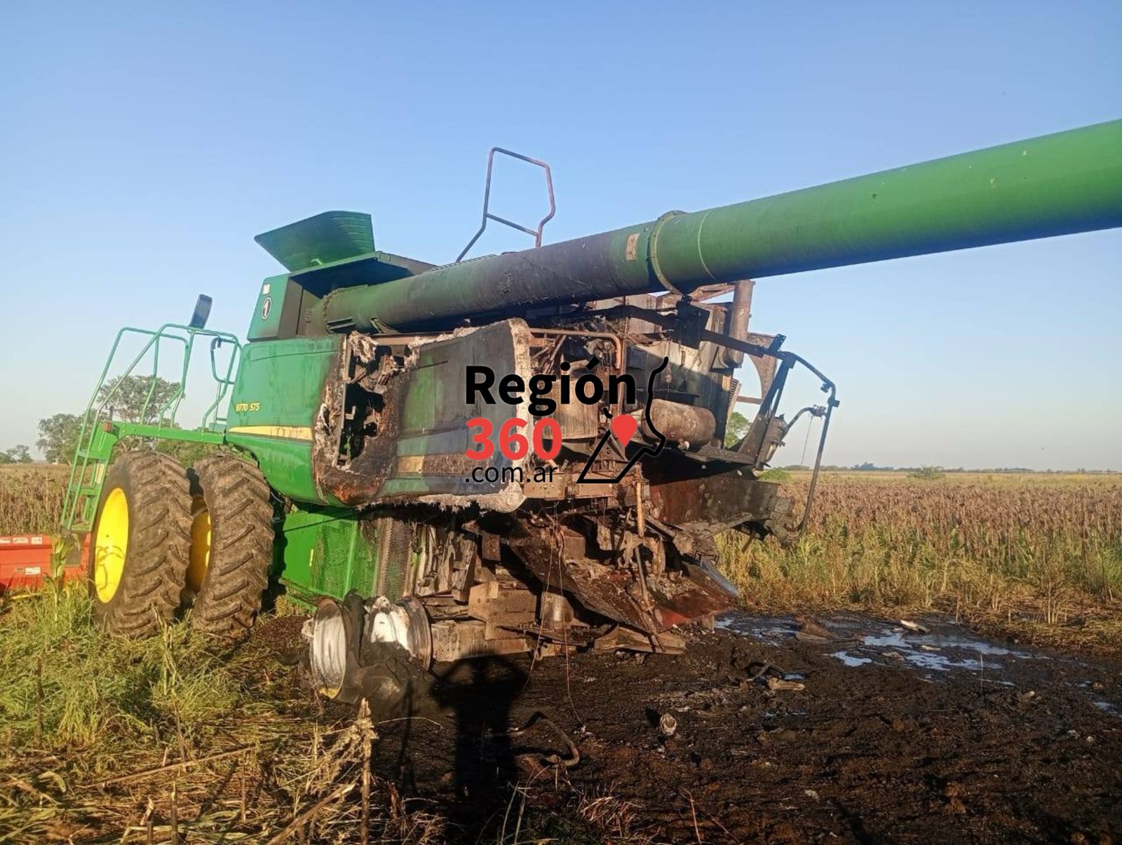 El hecho tuvo lugar en zona rural perteneciente a jurisdicción de Alcorta cuando, por razones que se tratan de establecer, un equipo marca John Deere tomó fuego y las llamas avanzaron rápidamente.