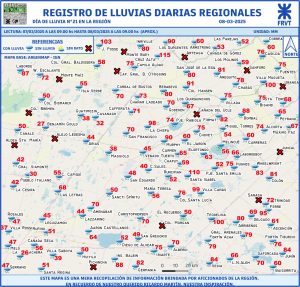 La Facultad Regional de Venado Tuerto emitió su informe de registros de lluvias caídas en la región. El mismo es confeccionado a partir de los datos aportados por meteorólogos aficionados de la zona.