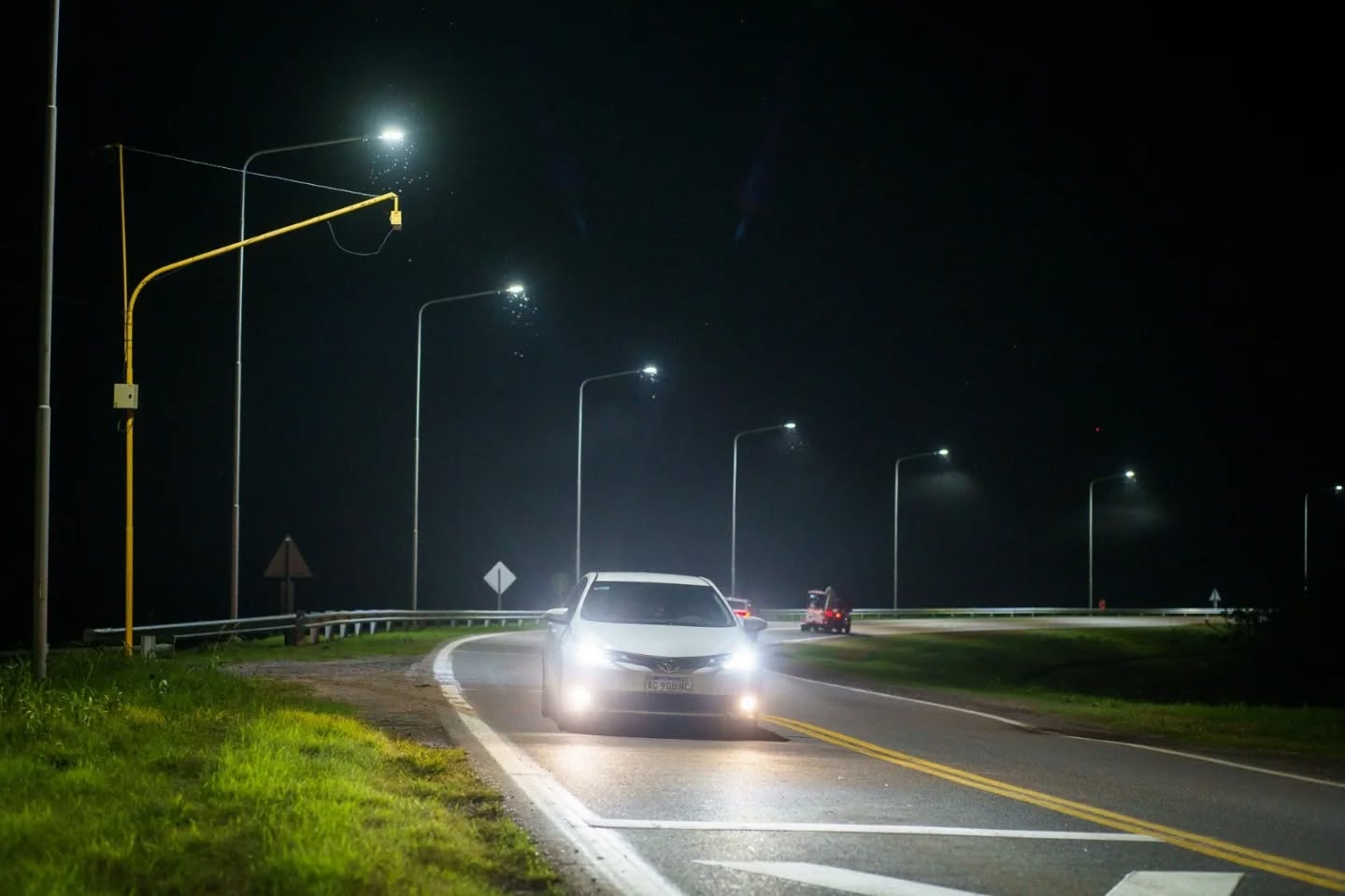 Durante esta noche de viernes, alrededor de las 20:30 se puso en funcionamiento el sistema de Iluminación sobre Ruta Provincial número 93, en la curva de ingreso a la ciudad de Firmat.