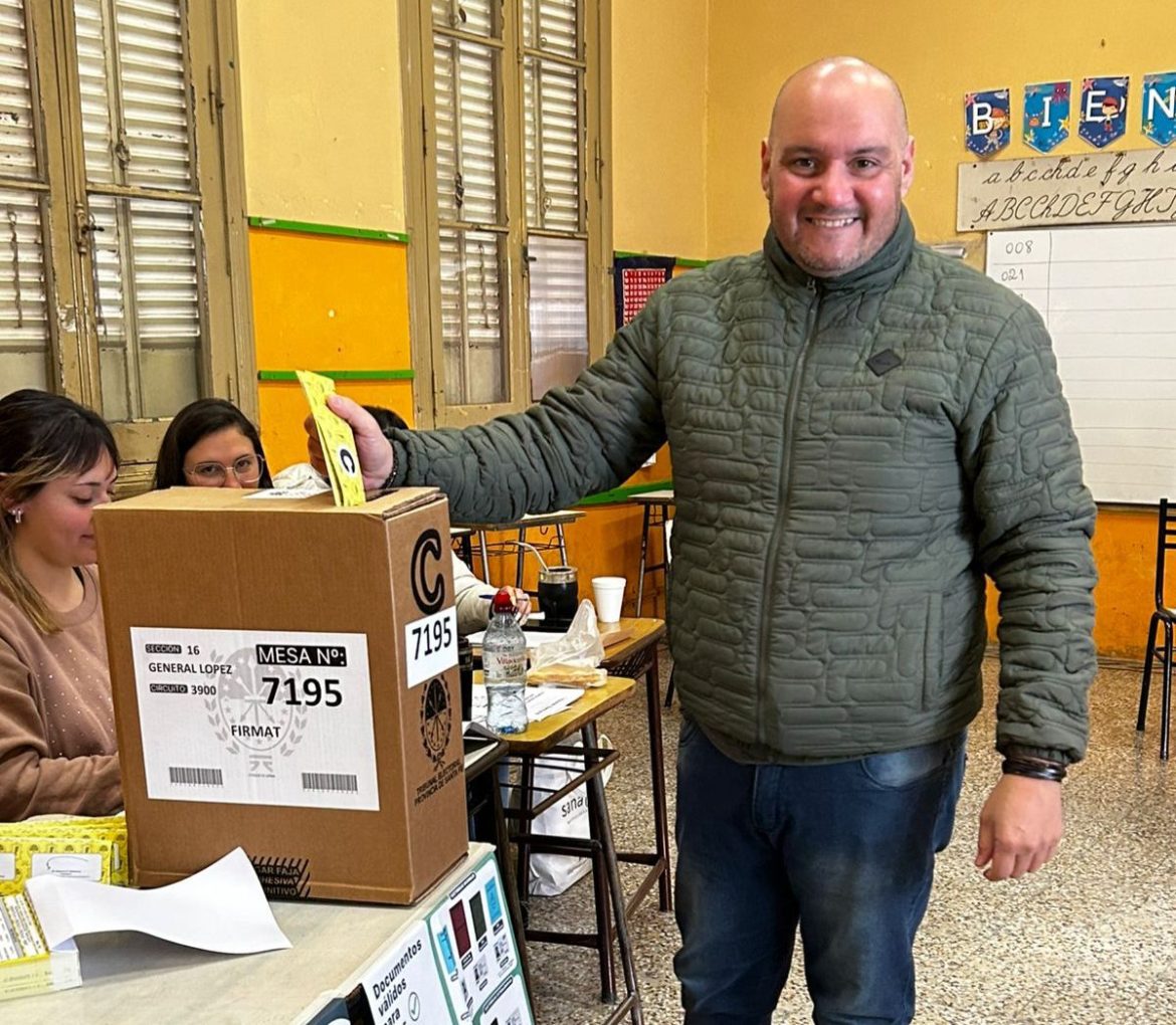 El candidato a concejal por Más Para Santa Fe, Guillermo Bravo, votó en la Escuela Sarmiento.