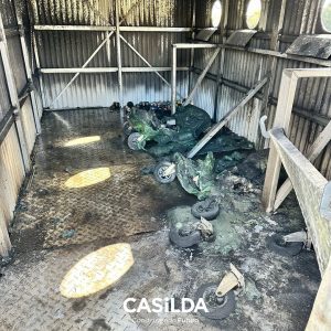 Horas antes, en la mañana del lunes, desde la Municipalidad de Casilda repudiaron un acto vandálico que terminó con un gran contenedor usado para concentrar elementos reciclables completamente incinerado.