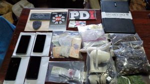 También se secuestraron 13 celulares, una cantidad no especificada de estupefacientes (cocaína y marihuana), un vehículo, armas de fuego, cuadernos y otros elementos de interés.