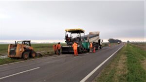 El frente de trabajo continúa su progreso hacia Venado Tuerto, esta semana entre Firmat y el acceso a Chovet, con reducciones de carril y paso alternado de a una mano por vez coordinado por banderilleros.