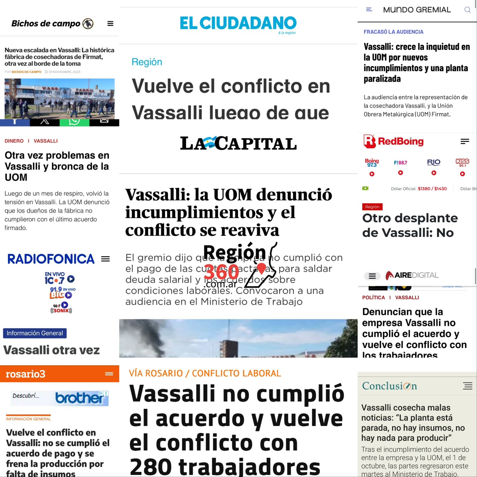 Desde los diarios La Capital y El Ciudadano; hasta los portales más vistos, como Radiofónica.com, Rosario3, Red Boing, Vía País, Conclusión, Aire Digital, entre otros. También los de llegada nacional con información especializada para el sector agropecuario, como lo es Bichos de Campo, comenzaron a hacerse eco del nuevo conflicto en la fábrica de cosechadoras firmatenses.