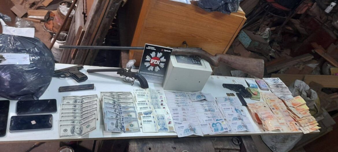Cabe mencionar que, en el allanamiento, se encontraron dos pistolas calibre 22, una escopeta calibre 12 y municiones. Además, se confiscaron dólares, pesos, teléfonos y material vegetal similar a cannabis.