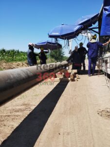 Entrando en detalles, Sorribas dijo que «ya llevan 5 kilómetros de cañería soldada y chequeada , avanzando a buen ritmo y de forma constante . Además, el resto del material ya está todo acopiado en Berabevú y todo pagado por la Provincia».