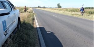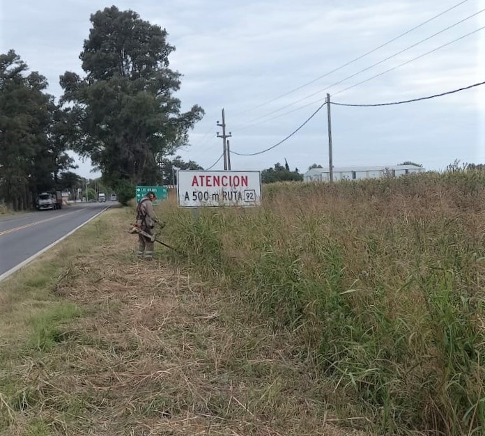 La cuadrilla asentada en el Campamento Casilda inició el corte con motoguadañas desde Pérez con trabajos que progresan hacia Rufino, en esta jornada concentrados entre Casilda y Chabás, sin producir reducciones sobre calzada.