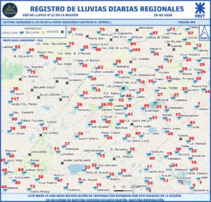 La Facultad Regional de Venado Tuerto emitió su informe de registros de lluvias caídas en la región. El mismo es confeccionado a partir de los datos aportados por meteorólogos aficionados de la zona.